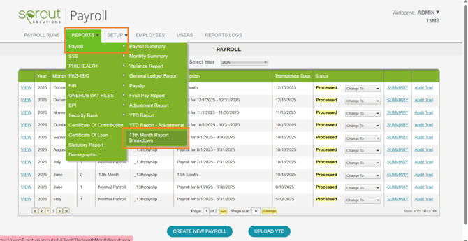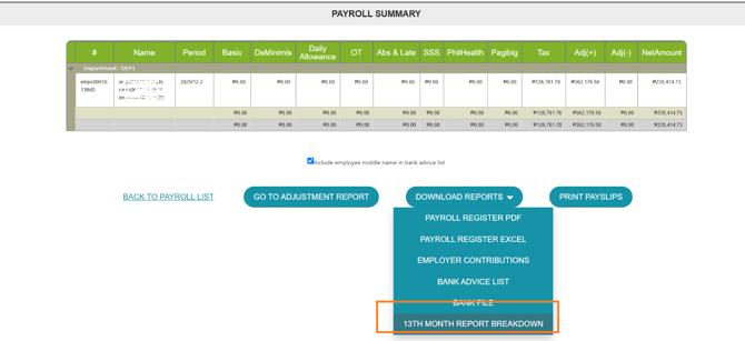 Users can access the report in two ways, depending on whether it is during or outside the 13th Month Pay run: