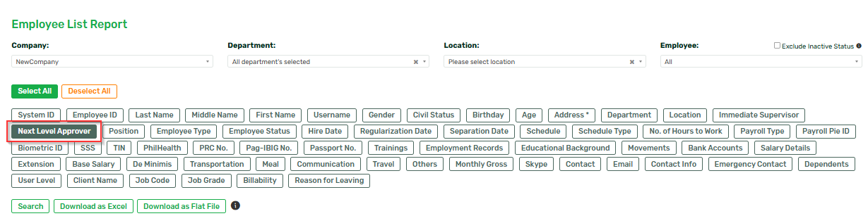 Additional Fields in Employee List Report: Immediate Supervisor & Next Level Approvers