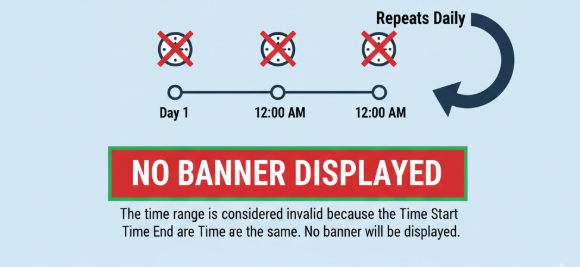 Key Takeaway: The announcement only shows during the 10-hour window you set, and it resets the next day.