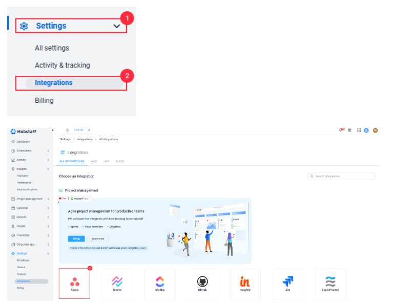 Integrating Hubstaff with Asana streamlines time tracking by automatically synchronising tasks across both platforms.
