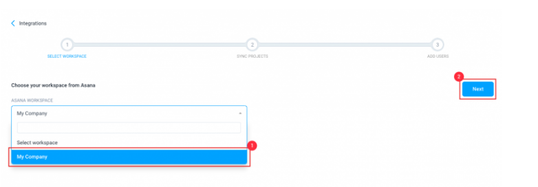 First, make sure that you have the correct organization selected, then click on the Settings tab and then Integrations in the left sidebar, on the main page click on the Asana logo.