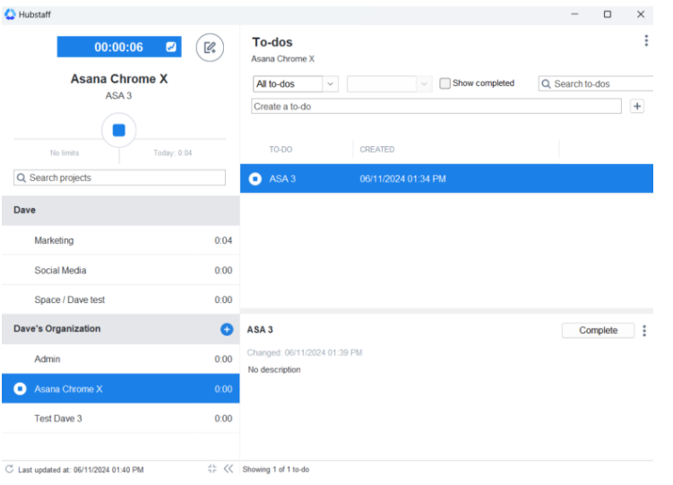 You will see the Asana tasks if you click on the project that you have mapped in the previous step. You are still able to track time directly on Hubstaff projects without selecting Asana tasks, but you are able to directly track them against Asana tasks.