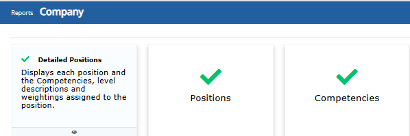 Yes! The Detailed Positions report under Reports > Company will display each position, the competencies, level descriptions, and weights assigned.