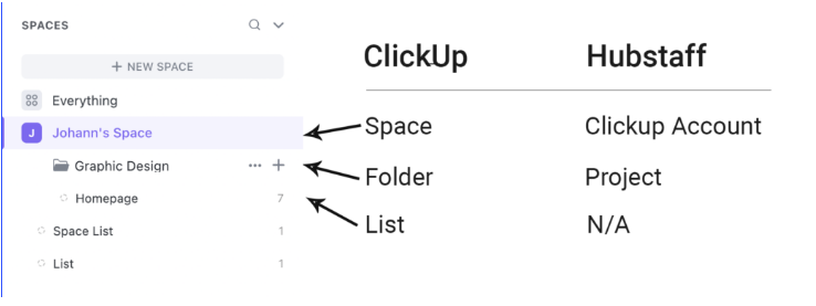 ClickUp Space name = Hubstaff project name