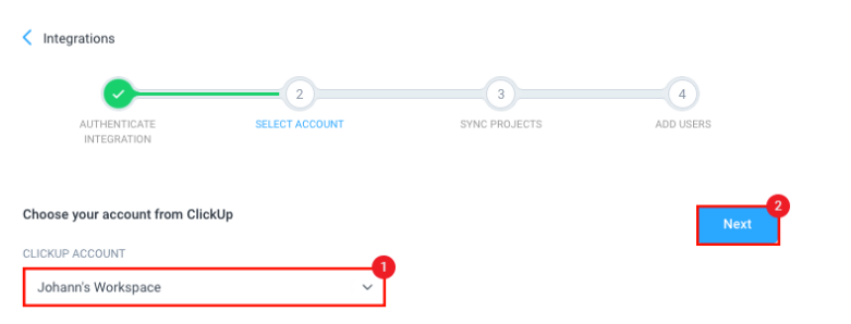 After successful authorization, choose the ClickUp workspace that you want to integrate. Click Next.