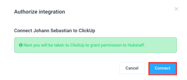 You will need to grant Hubstaff access to your ClickUp account. If you are already logged into your ClickUp account, you won’t be asked to log in again.