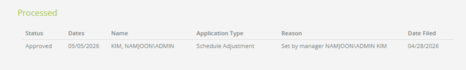Please note that Schedule Adjustment is an indicator that the employee is expected to work and has actual logs based on the approved date.