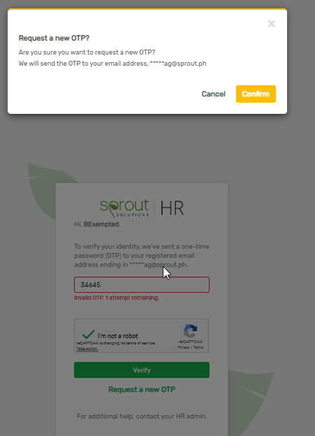 If ever a user has not yet received their OTP (One-Time password) in their inbox or the last OTP received has already expired, they may be able to request a new OTP.