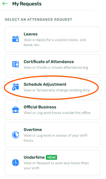 Step 2: On your My Requests page, select Schedule Adjustment.