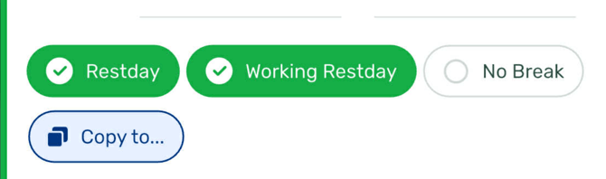 - To set a rest day to a working rest day, click the Working Rest Day checkbox and type the shift from and to, and the break start and to then click Done.