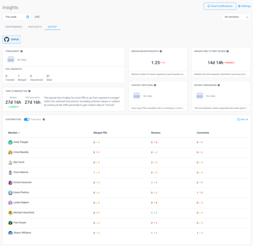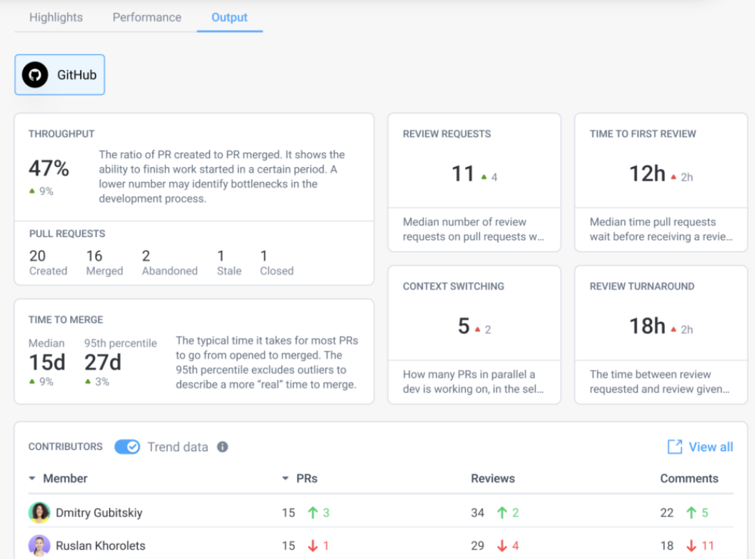 When you connect your Github repository into Hubstaff Insights, you will be able to view the following data: