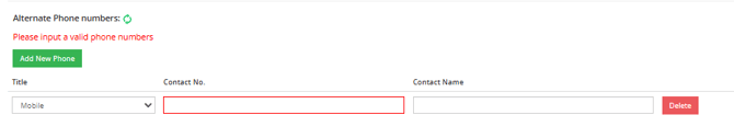 - *Alternate Phone Numbers - input at least one using the following formats: