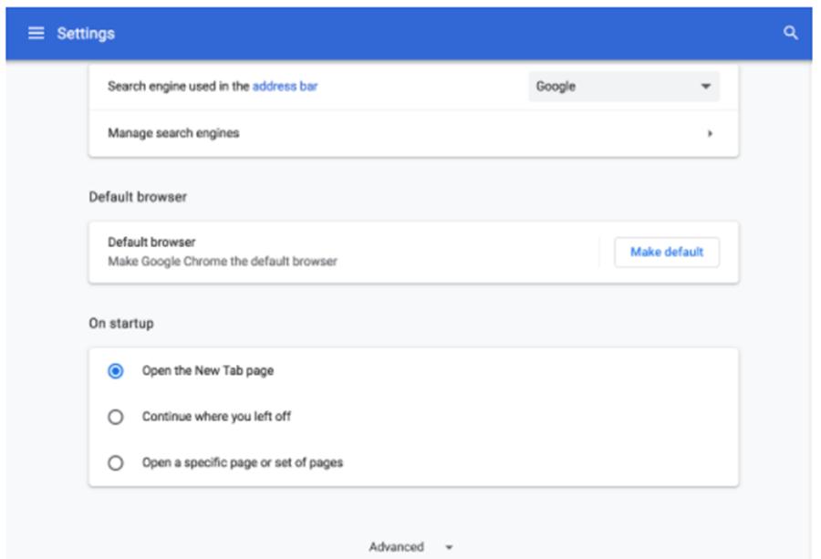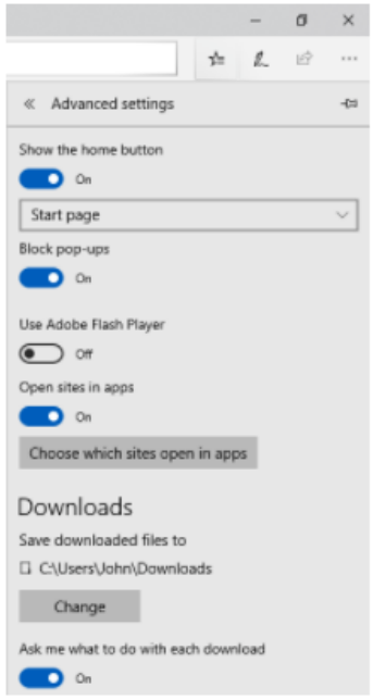 • Within the Advanced settings, ensure that Block pop-ups is turned OFF.