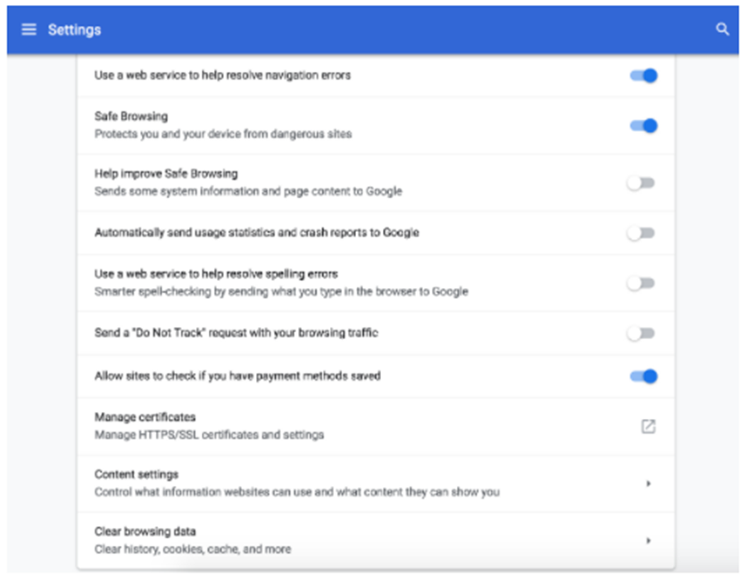Note that browser settings may vary depending on the browser version and operating system version you’re using. Your browser settings screens may look different from the screen images below.