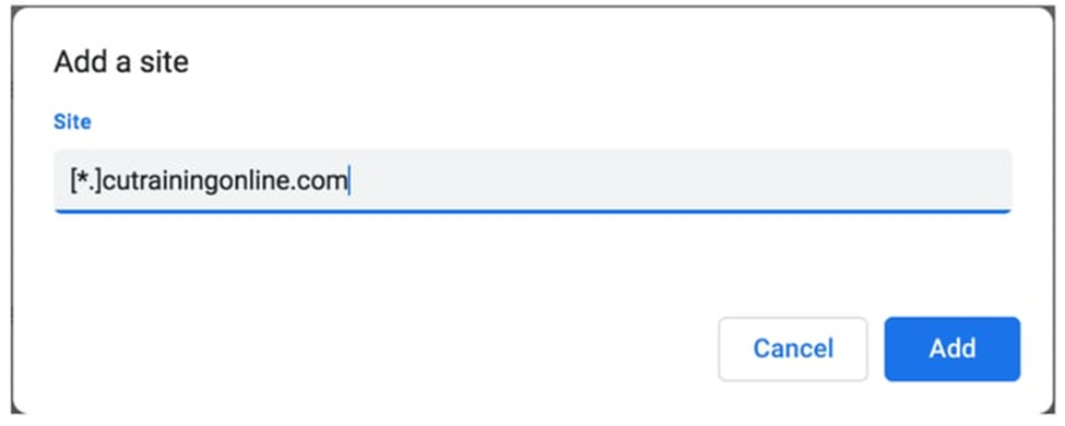 2. Enter [*.]cutrainingonline.com in the Site field, then click Add.