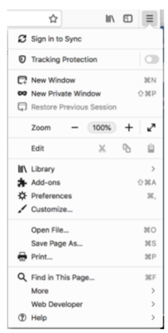 2. Click the three bars icon at the top right-hand corner of the browser to open the menu, then select Preferences.