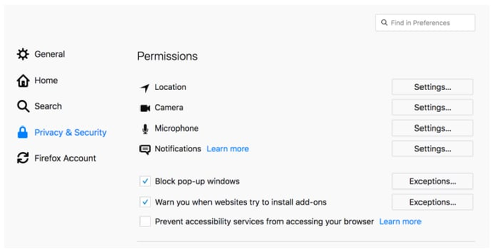 3. When the Preferences screen appears, select Privacy & Security from the left-hand menu.