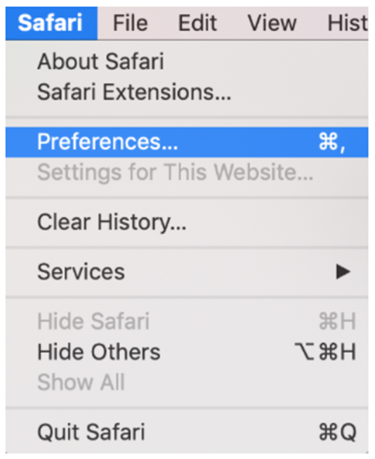 2. From the menu, select Safari, then Preferences…