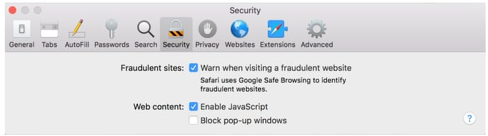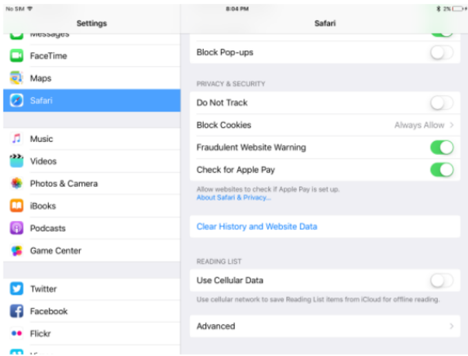 3. In the Safari settings (on the right side of the screen), ensure that Block Pop-ups is NOT selected.