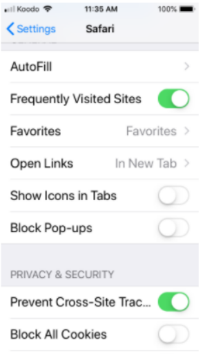 4. Additionally, ensure that the Block Cookies setting is either Always Allow or Allow from Websites I Visit.