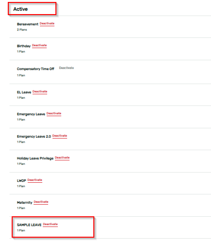8. The Leave Plan you activated would then be added under the Active Leave Types.
