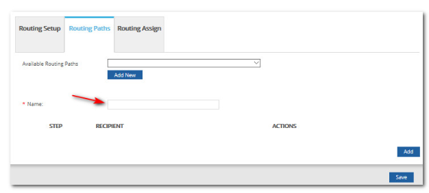 3. Once you click Add New button, you will be asked first for the name of the Routing Path, then you need to click on the Add button to add the recipient for this routing path depending on how many appraisers you’ll love to be included.