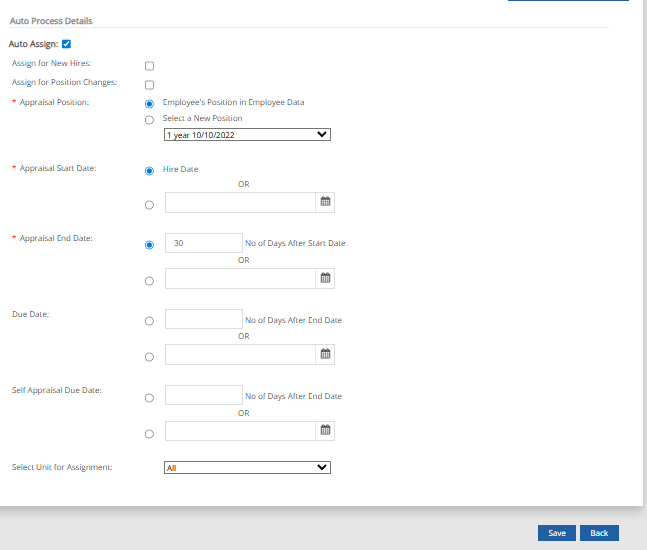The last section of this page is the second option you can use to assign employees to the appraisal. You can assign the appraisal to the employee based on their position in the company.