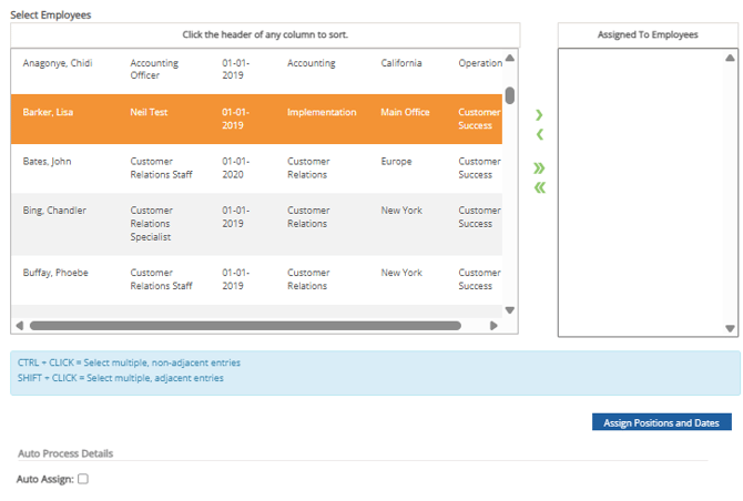 Once you selected, a pop-up will appear, reminding the user to click on Assign positions and Dates to fully assign the employees.