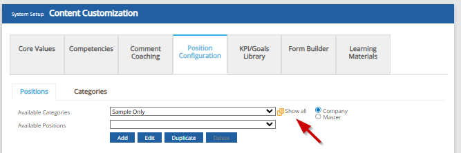 3. From the "Available Categories" dropdown, select the category to which the position is assigned. To see all positions, regardless of category, click Show All.