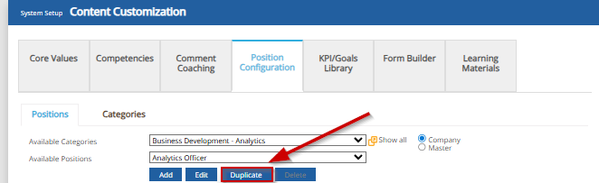 5. Proceed to edit the Name of the duplicated position and edit the Competencies, if desired.