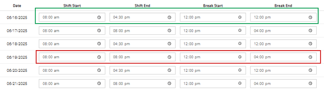 Note: If the break schedule is more than 30 minutes, it will be considered a Broken shift.