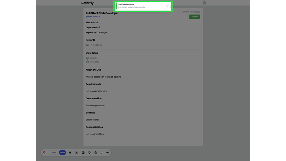 Follow the instructions below to seamlessly navigate and make the necessary changes to a job opening in Referrly.