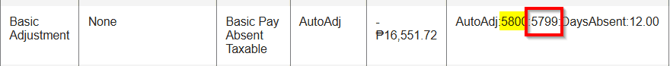 AutoAdj:5800:5799:DaysAbsent:12.00 - The first set of numbers in the highlighted item is the payroll ID of your current payroll run (5800), while the second set of numbers is the payroll ID from which the adjustment originates (5799).