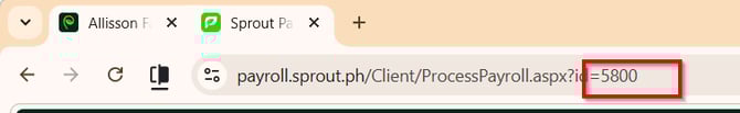 The payroll ID can be found in the address bar. In the example above, the payroll ID is 5800. To easily check the payroll run for the second payroll ID, you can view any payroll run and replace the payroll ID with the one you are looking for. For example, in the screenshot above, you can replace the number 5800 with 5799 if you are looking for the payroll run with payroll ID 5799. The payroll run should appear if it has not been deleted.