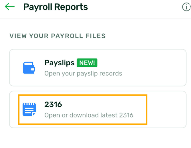 - On the same Payroll View, click 2316 to view the latest BIR 2316. Users will also be able to view and download the 2316 on their phones.'