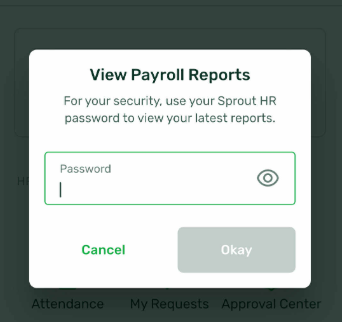 - To view the Payroll documents, enter the login password or use biometric authentication (fingerprint or facial recognition).