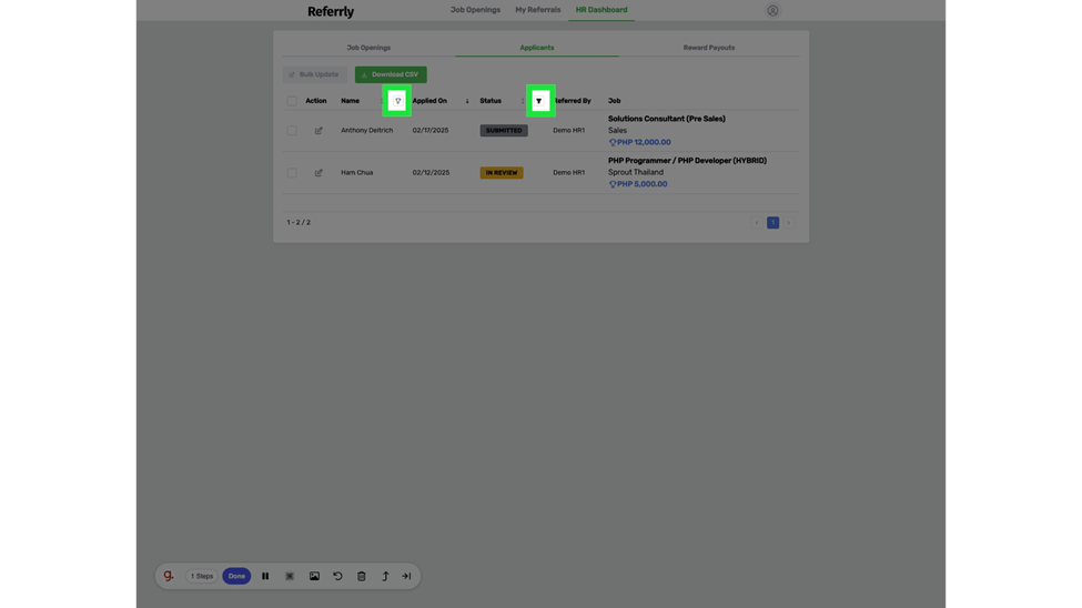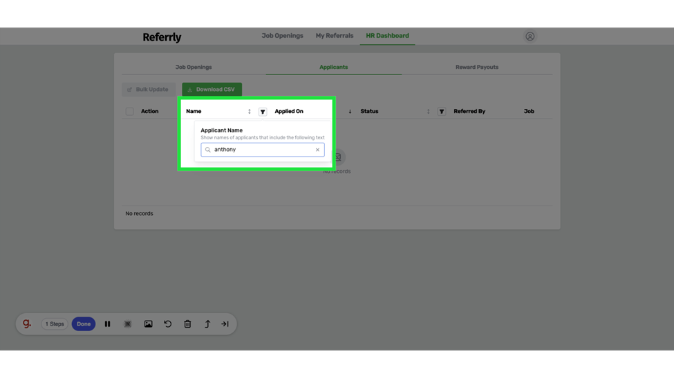 Ensure the Applicants tab is active. If not, click it to view the list of applicants.