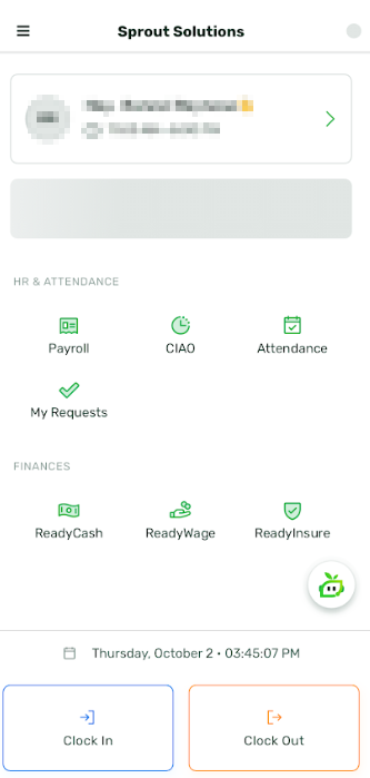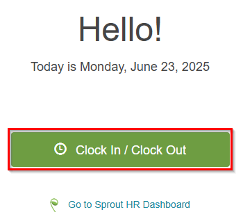 Employees can clock in / out via a button in their Sprout HR Dashboard.