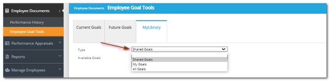 From the main menu, under Employee Documents, click Employee Goal Tools.