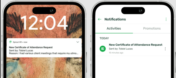 When your direct reports submit a My Request, you’ll receive a push notification on your device (ensure notifications are enabled for the Sprout Mobile App in your device settings).