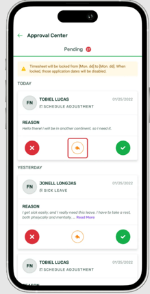 - Resend: Tap the Resend button on the approval card to return the request to the employee.