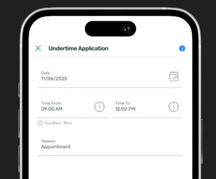 With the Sprout Mobile App, you can easily file Undertime (UT) requests whenever you need to leave work earlier than your scheduled shift. Whether it’s for a personal errand, an appointment, or an emergency, you can file your UT in just a few taps — right from your phone.
