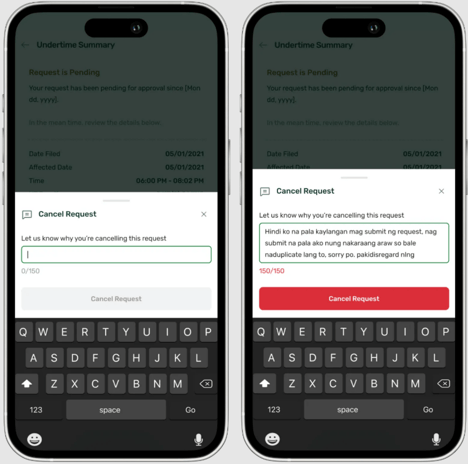Tap the Cancel Request Button and Enter Your Cancellation Reason in the Prompt