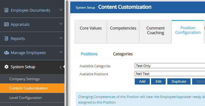 Just go to System Setup > Content Customization > Position Configuration.