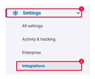 First, make sure you have selected the correct organization on the top right corner of the page, then click on Settings > Integrations on the sidebar menu. Next, select the Podio logo from the list of available integrations.