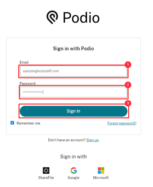Then, login to your Podio account. After logging in, then the set-up is complete.