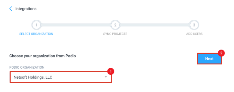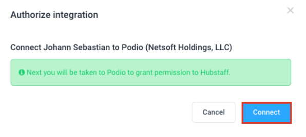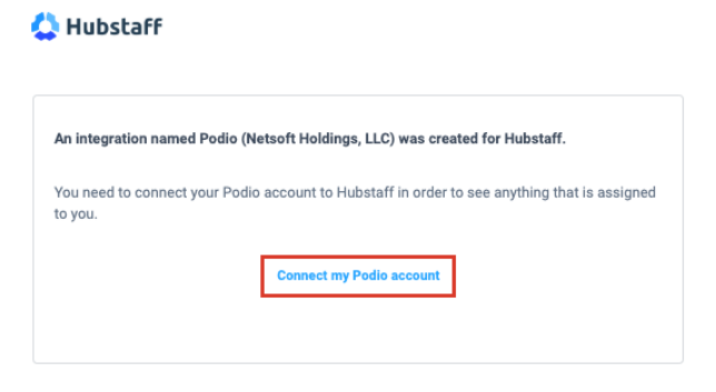 Select the Podio organization you would like to link to Hubstaff, then hit Next.