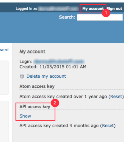 C. Click on My account in your Redmine instance (this link is in the top right corner on default setups, this may vary for you). Then click on Show under API access key to find your API token: