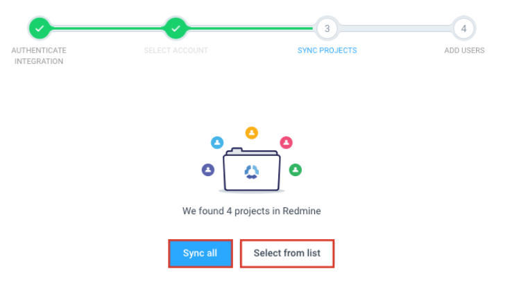 Next, the sync projects screen will appear. Link all projects or manually choose which projects you need to link from a list.
