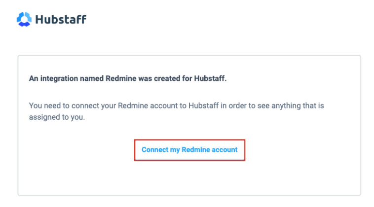 Each added user will receive a confirmation email from Hubstaff on their registered email address. Ask each user to click on the Connect my Redmine account button.